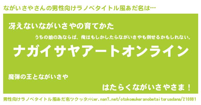 ながいさやさんの男性向けラノベタイトル風あだ名をツクッター!