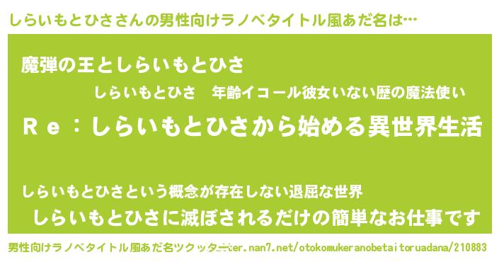 | 意味不明あだ名 | 『自称しらいもとひさ』 |