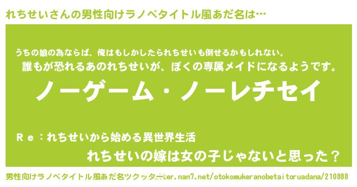 | 女子向けラノベタイトル風あだ名 | 『死神れちせいの再婚』 |