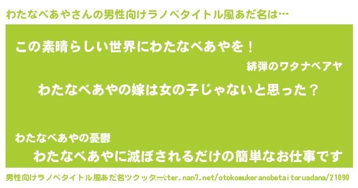 | 女子向けラノベタイトル風あだ名 | 『わたなべあや様がみてる』 |