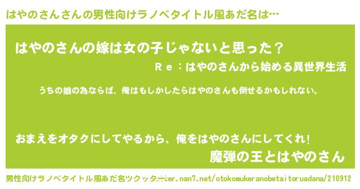 | 胡散臭い通販商品みたいなあだ名 | 『世界が平和になる高級そうな壺…その名も「はやのさん」』 |