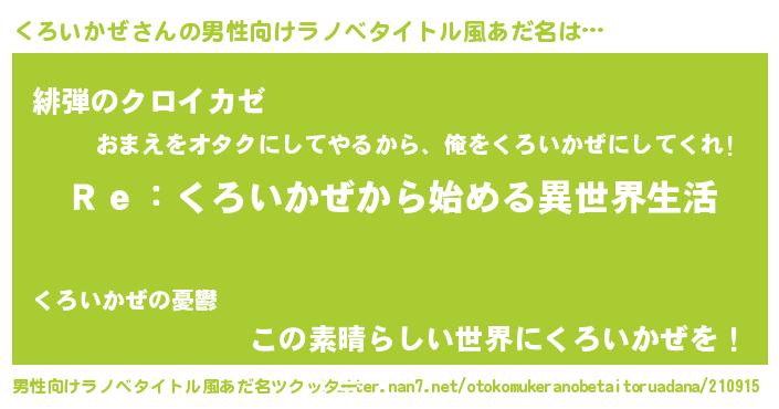 | 女子向けラノベタイトル風あだ名 | 『闇のくろいかぜ』 |