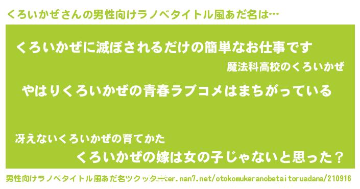 | 女子向けラノベタイトル風あだ名 | 『くろいかぜ伯爵の花嫁』 |