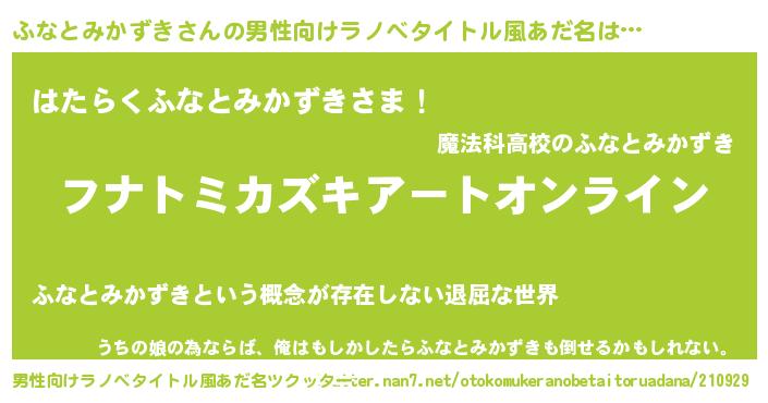 | 女子向けラノベタイトル風あだ名 | 『ふなとみかずき姫と円卓の騎士』 |