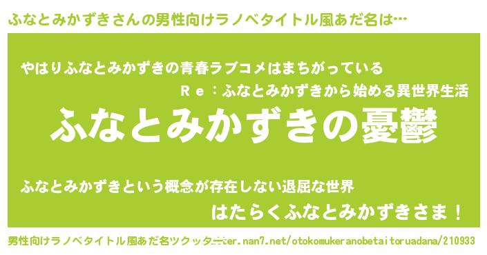 | 女子向けラノベタイトル風あだ名 | 『(仮)ふなとみかずきのやんごとなき事情』 |