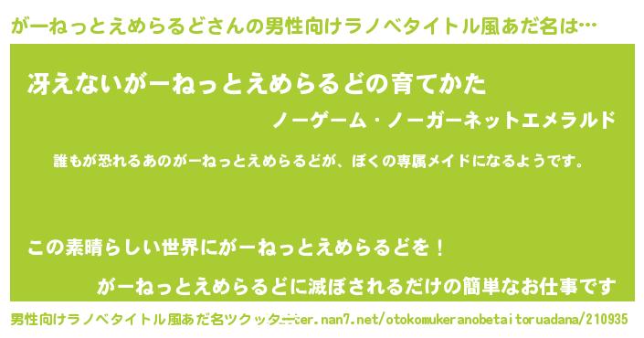 | 意味不明あだ名 | 『永久保存がーねっとえめらるど』 |