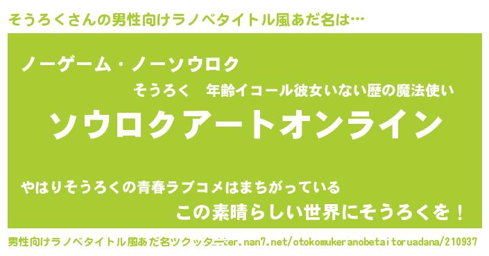 | 胡散臭い通販商品みたいなあだ名 | 『モテモテ間違いなし水晶球…その名も「そうろく」』 |