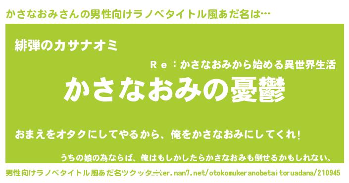 | 女子向けラノベタイトル風あだ名 | 『かさなおみ姫と円卓の騎士』 |