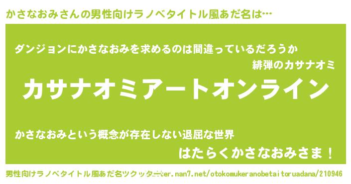| 胡散臭い通販商品みたいなあだ名 | 『億万長者になれるブレスレット…その名も「かさなおみ」』 |