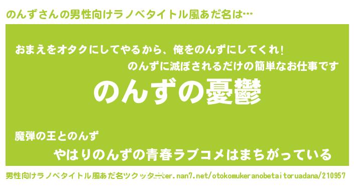 | 胡散臭い通販商品みたいなあだ名 | 『必ず成功する霊験あらたかなお札…その名も「のんず」』 |