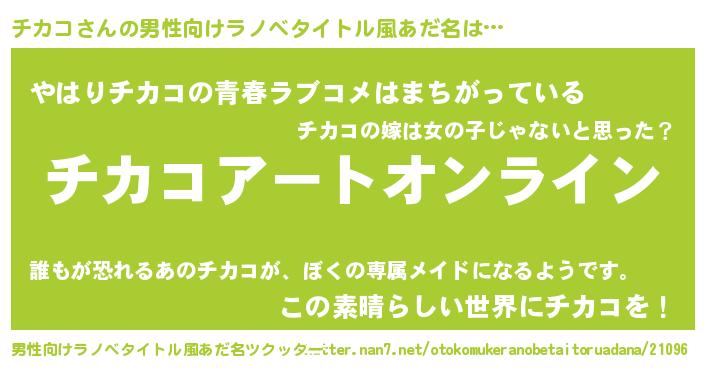 | 女子向けラノベタイトル風あだ名 | 『誰かこのチカコを説明してください! ~契約から始まるウェディング~』 |