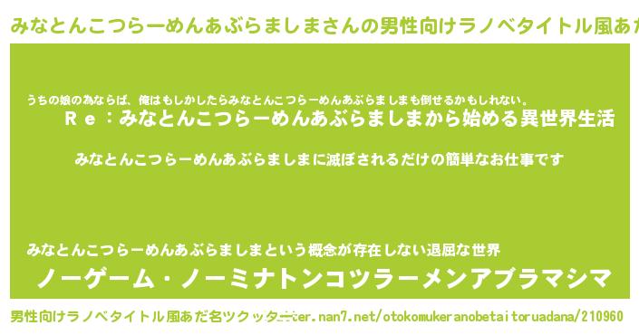| 女子向けラノベタイトル風あだ名 | 『横柄みなとんこつらーめんあぶらましまと宰相陛下』 |