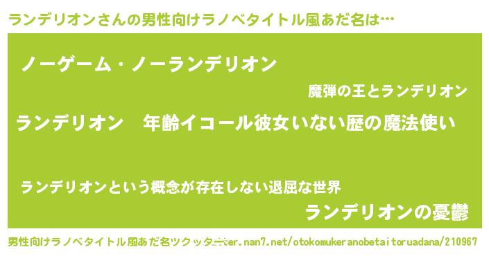 | 女子向けラノベタイトル風あだ名 | 『ランデリオンの玉の輿計画!』 |