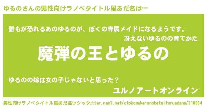 | 女子向けラノベタイトル風あだ名 | 『乙女ゲームの破滅フラグしかない悪役ゆるのに転生してしまった…』 |