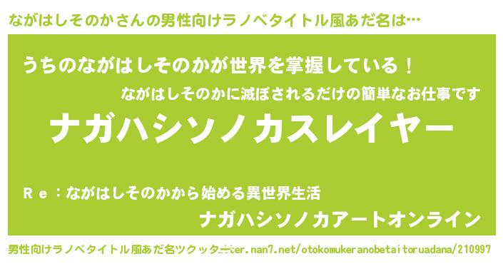 | 胡散臭い通販商品みたいなあだ名 | 『必ず成功する霊験あらたかなお札…その名も「ながはしそのか」』 |