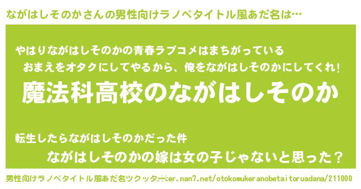 | 女子向けラノベタイトル風あだ名 | 『ながはしそのかなんてお断りですっ。』 |
