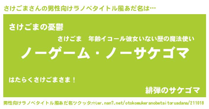 | 女子向けラノベタイトル風あだ名 | 『さけごま恋絵巻』 |