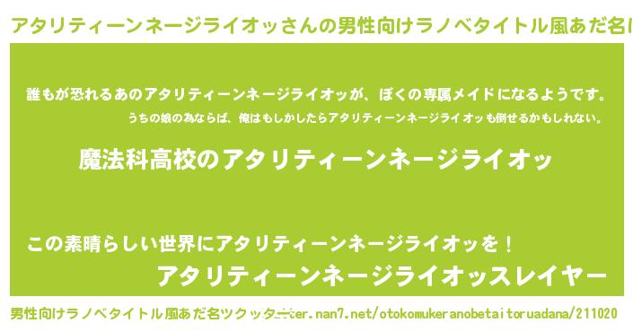 | 女子向けラノベタイトル風あだ名 | 『アタリティーンネージライオッアンティーク』 |