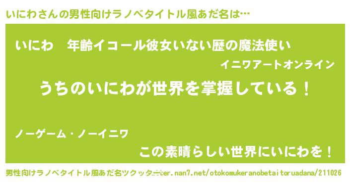 | ヘコむあだ名 | 『いにもー』『いにを』『いにわ(笑)』 |