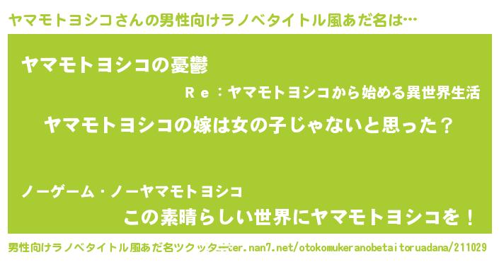 | 女子向けラノベタイトル風あだ名 | 『ヤマモトヨシコ様がみてる』 |