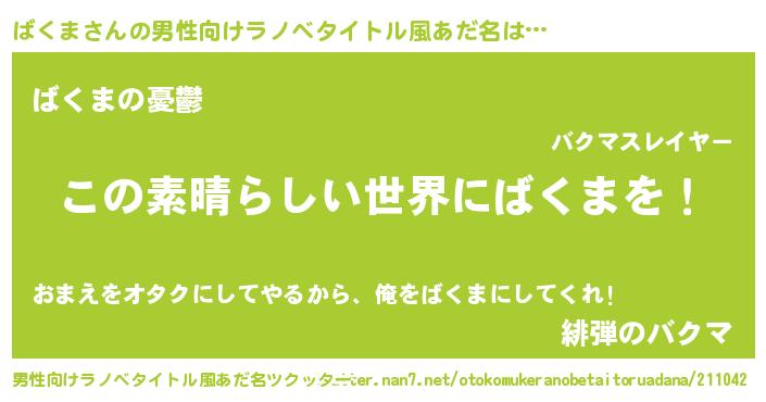 | 女子向けラノベタイトル風あだ名 | 『乙女ゲームの破滅フラグしかない悪役ばくまに転生してしまった…』 |