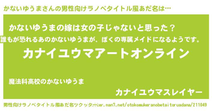 | 女子向けラノベタイトル風あだ名 | 『かないゆうま姫と円卓の騎士』 |