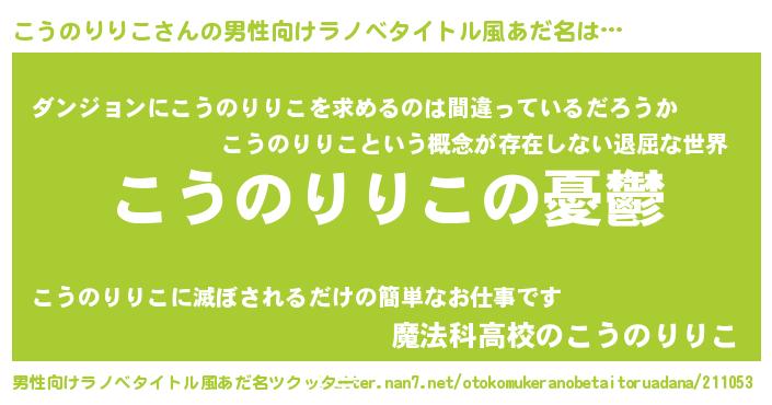 | 女子向けラノベタイトル風あだ名 | 『(仮)こうのりりこのやんごとなき事情』 |