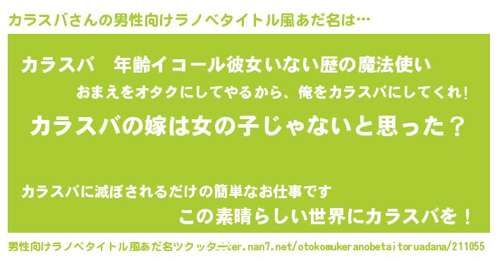 | 女子向けラノベタイトル風あだ名 | 『カラスバ様がみてる』『カラスバ恋絵巻』 |