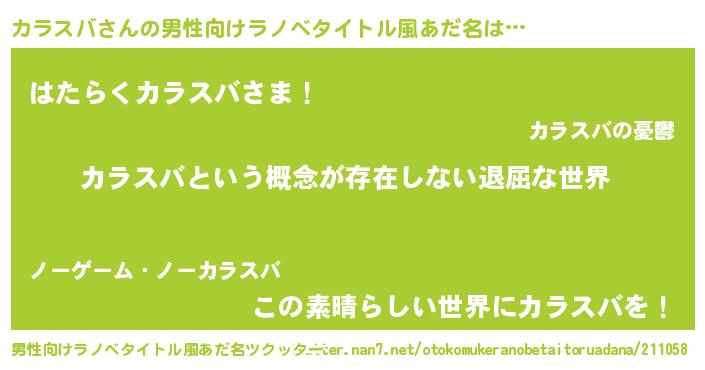 | ヘコむあだ名 | 『カラスバ(笑)』『カラにゅー』 |