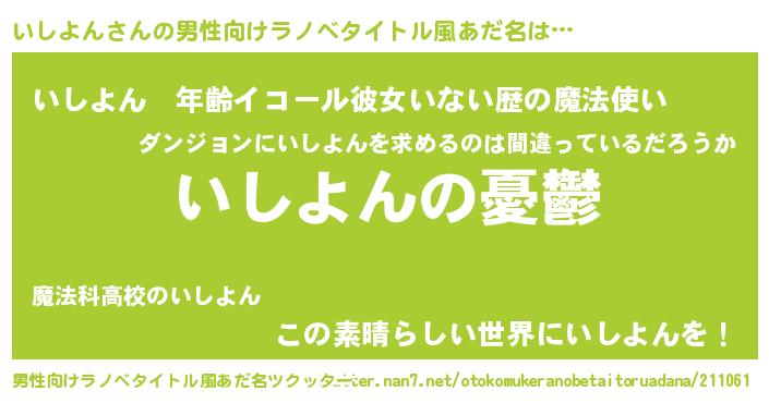 | 胡散臭い通販商品みたいなあだ名 | 『モテモテ間違いなしブレスレット…その名も「いしよん」』 |