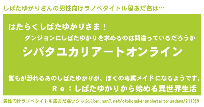 | 女子向けラノベタイトル風あだ名 | 『誰かこのしばたゆかりを説明してください! ~契約から始まるウェディング~』 |