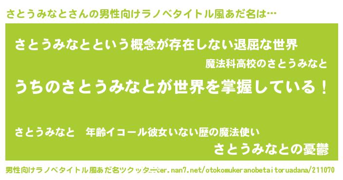 | 女子向けラノベタイトル風あだ名 | 『男装さとうみなとの憂鬱な任務』 |