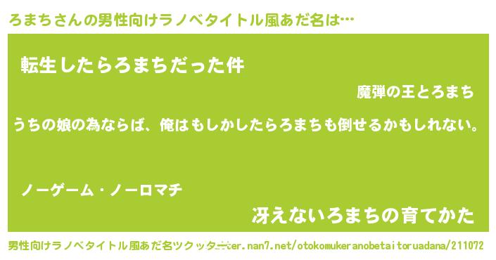 | 女子向けラノベタイトル風あだ名 | 『ろまちの婚約者』『死神ろまちの再婚』 |