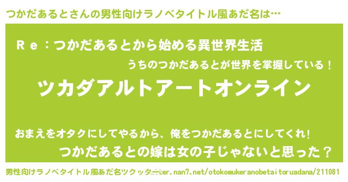 | 女子向けラノベタイトル風あだ名 | 『つかだあると姫と円卓の騎士』 |