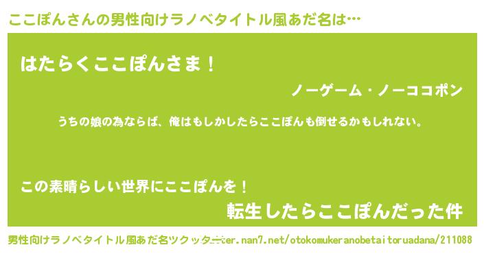 | ヒーロー風カッコイイあだ名 | 『ウルトラここぽんマン』『仮面ココダー』 |