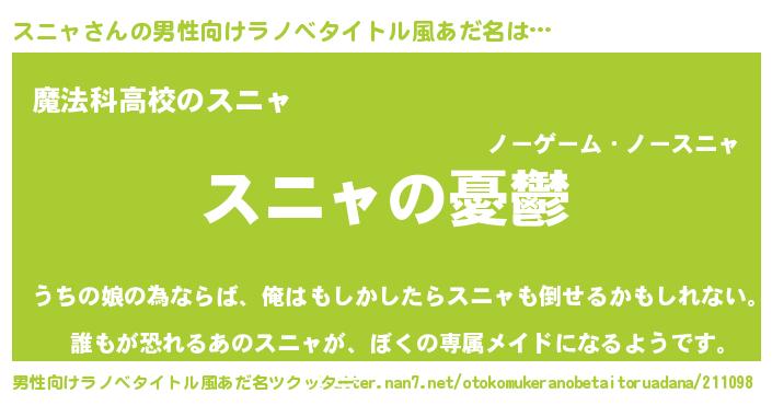 | 胡散臭い通販商品みたいなあだ名 | 『必ず成功する霊験あらたかなお札…その名も「スニャ」』 |