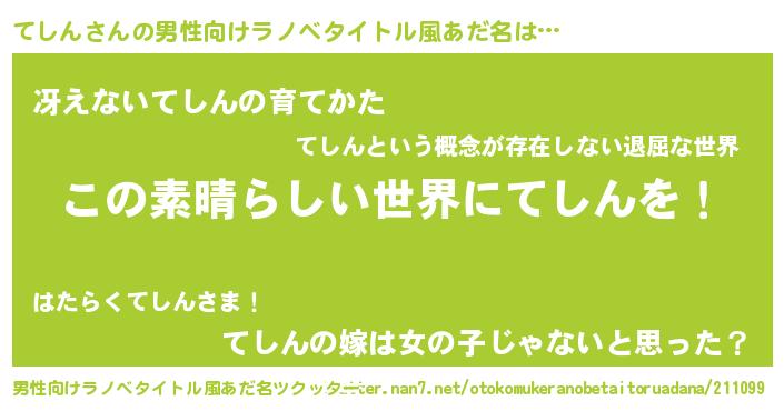 | 意味不明あだ名 | 『住所不定無職てしん(14歳)』『自称てしん』 |