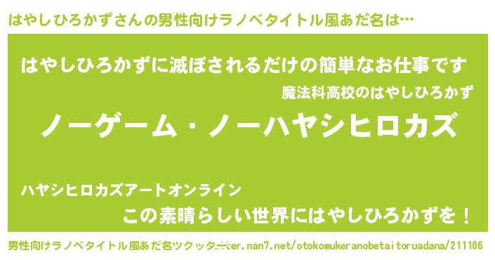 はやしひろかずさんの男性向けラノベタイトル風あだ名をツクッター!