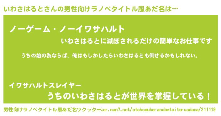 | 女子向けラノベタイトル風あだ名 | 『いわさはるとの婚約者』 |