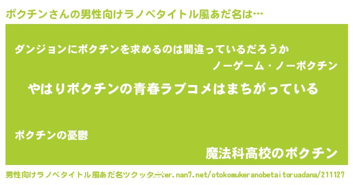 | ファンタジー風あだ名 | 『エターナルボクチンー』『ゼボクトゥ』 |