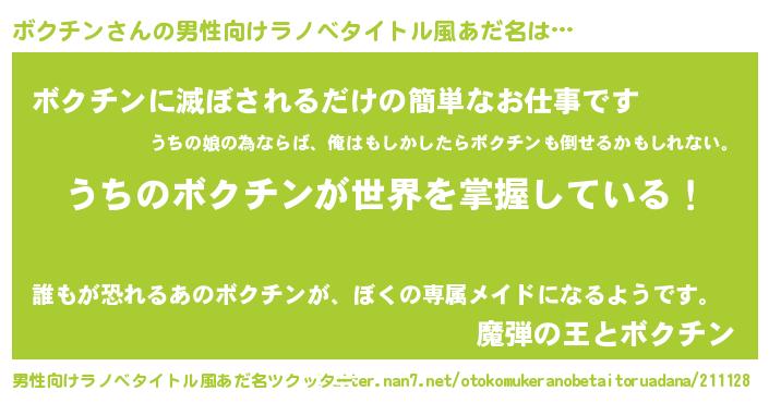 | 胡散臭い通販商品みたいなあだ名 | 『あなたにだけ特別に提供する世界で10本だけ現存している希少なブランデー…その名も「ボクチン」』 |