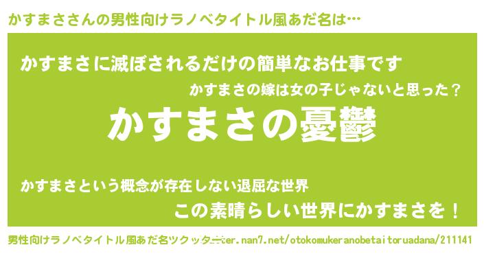 | 女子向けラノベタイトル風あだ名 | 『(仮)かすまさのやんごとなき事情』 |