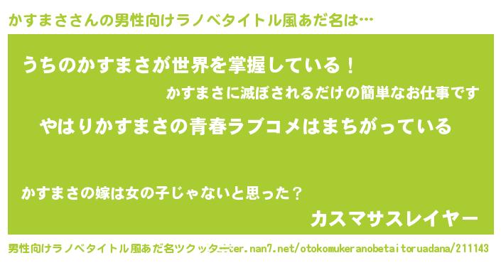 | 意味不明あだ名 | 『かすまさフォーエバー』『自称かすまさ』 |