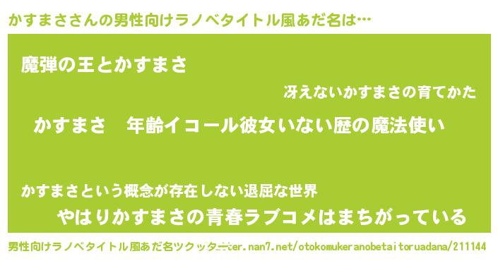 | 女子向けラノベタイトル風あだ名 | 『かすまさの玉の輿計画!』 |