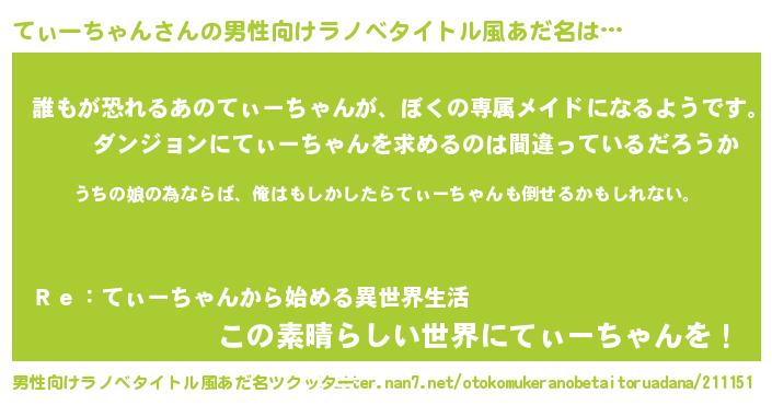 | ファンタジー風あだ名 | 『エターナルティーチャンー』 |