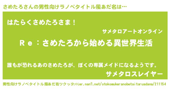 | 肩書あだ名 | 『さめたろ閣下』『さめたろマネージャー』 |