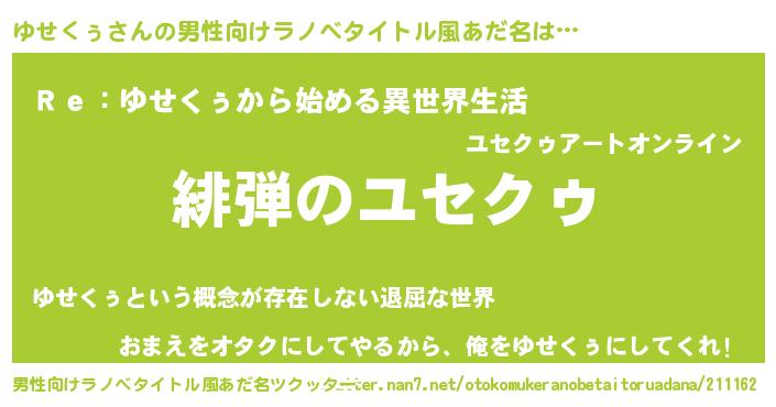 | 意味不明あだ名 | 『自称ゆせくぅ』『ペロリンゆせくぅ』 |