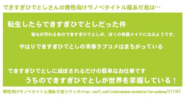 | 意味不明あだ名 | 『できすぎひでとしフォーエバー』 |