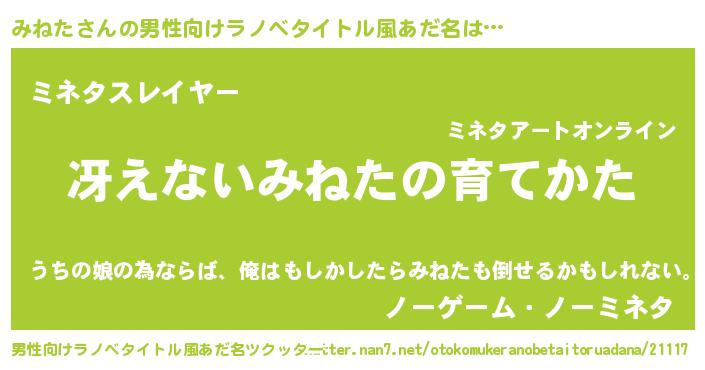 | 女子向けラノベタイトル風あだ名 | 『シンデレラみねた家の靴箱館』 |