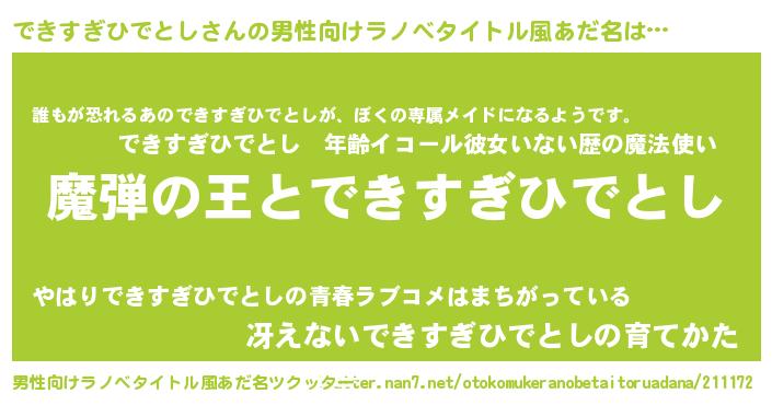 | 意味不明あだ名 | 『住所不定無職できすぎひでとし(50歳)』 |